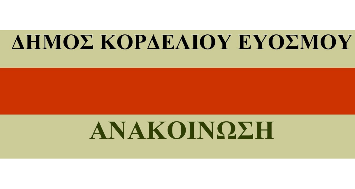 Ο Δήμος Κορδελιού Ευόσμου ενημερώνει ότι το κτίριο της Πολεοδομίας επί της οδού Εθν. Αντιστάσεως στο Ελευθέριο Κορδελιό, θα παραμείνει σήμερα Παρασκευή 12 Νοεμβρίου κλειστό, λόγω της ύπαρξης επιβεβαιωμένου κρούσματος covid – 19 σε εργαζόμενο.