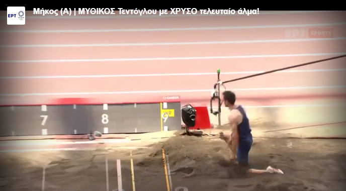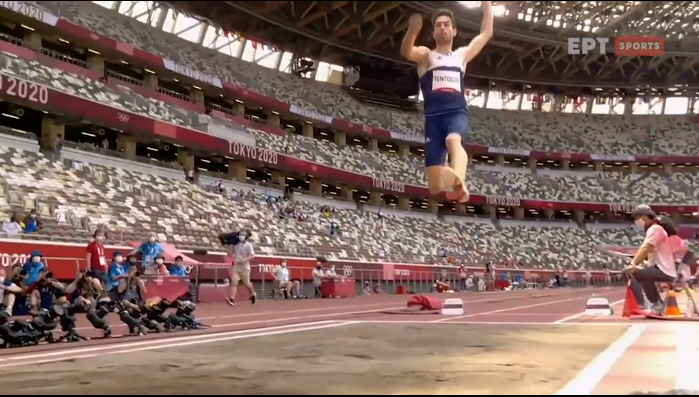 Ο Μίλτος Τεντόγλου με το τελευταίο άλμα του προσγειώθηκε στα 8,41μ. και κατέκτησε το χρυσό μετάλλιο στο μήκος των Ολυμπιακών Αγώνων του Τόκιο.