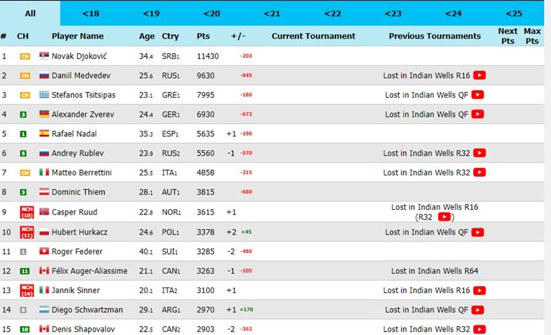Αμετάβλητη θα παραμείνει η θέση του Στέφανου Τσιτσιπά, ως 3ος στον κόσμο, στην κατάταξη της ATP, με 7795 βαθμούς. Στην πρώτη πεντάδα (ως 5ος) αναμένεται να επιστρέψει ο Ράφα Ναδάλ (5635 βαθμοί).