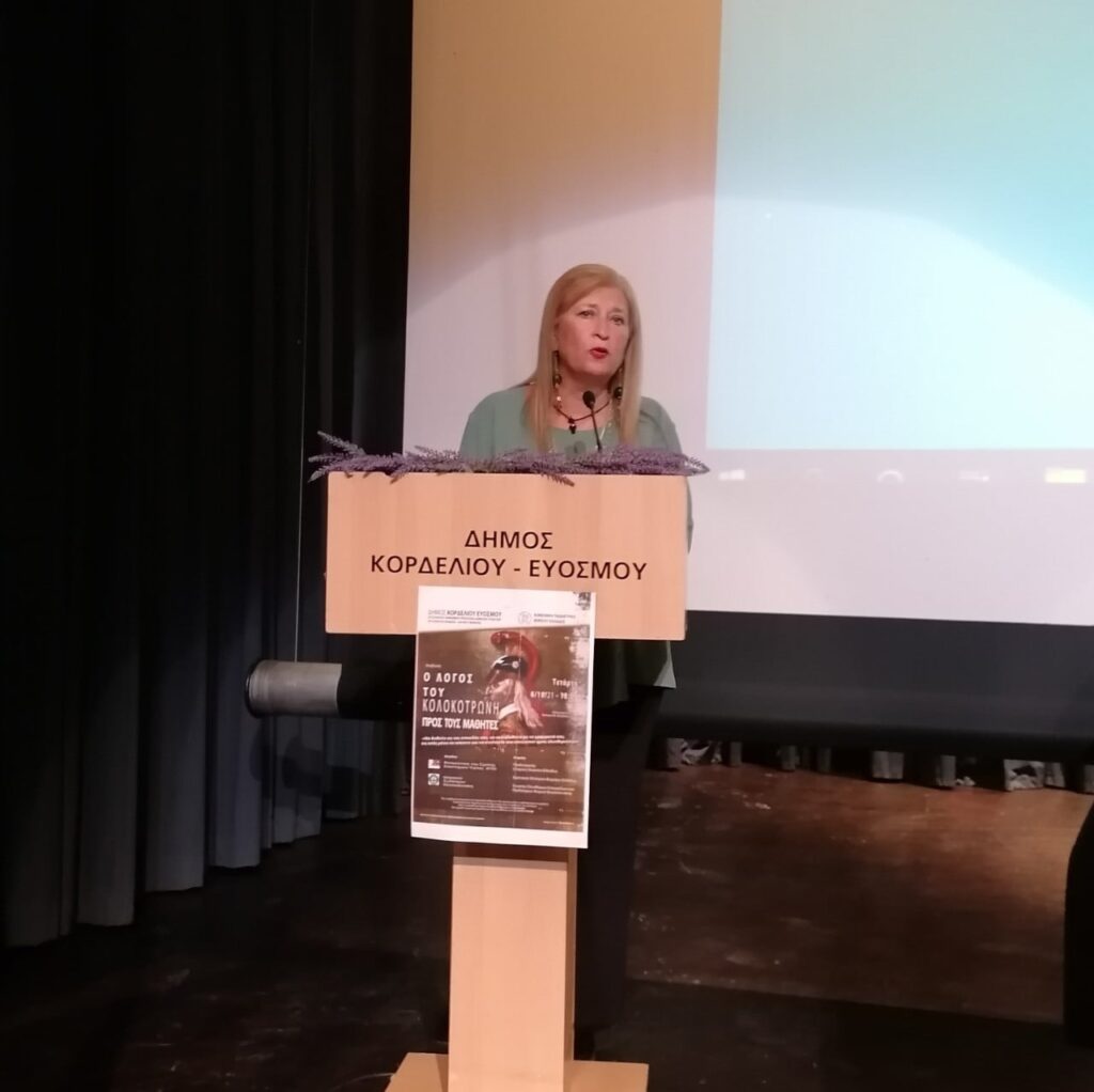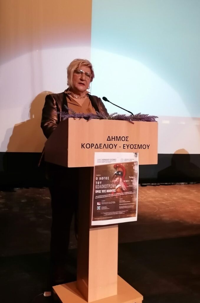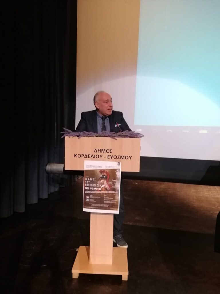 Η ΑΝΑΒΙΩΣΗ – ΑΠΑΓΓΕΛΙΑ- ΤΟΥ ΛΟΓΟΥ ΤΟΥ ΚΟΛΟΚΟΤΡΩΝΗ ΠΡΟΣ ΤΟΥΣ ΜΑΘΗΤΕΣ έγινε από το ηθοποιό του Κρατικού Θεάτρου Βορείου Ελλάδος Χρήστο Μαστρογιαννίδη και η εκδήλωση έκλεισε με την ομιλία της κ. Βασιλικής Γκουντσίδου -Πανεπιστημιακός-Φυσικός ΑΠΘ, Μέλος Διοικούσας Επιτροπής του Ευρωπαϊκού Προγράμματος για το Cyberbullying ΣΧΟΛΙΚΟΣ ΕΚΦΟΒΙΣΜΟΣ.