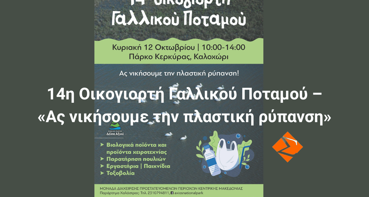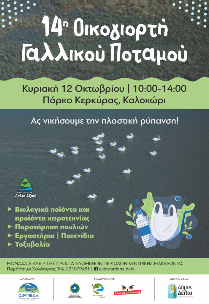 Με θέμα «Ας νικήσουμε την πλαστική ρύπανση», πραγματοποιείται φέτος η 14η Οικογιορτή Γαλλικού Ποταμού, την Κυριακή 12 Οκτωβρίου 2025, από τις 10:00 έως τις 14:00, στο Πάρκο Κερκύρας, μπροστά στη Λιμνοθάλασσα Καλοχωρίου.