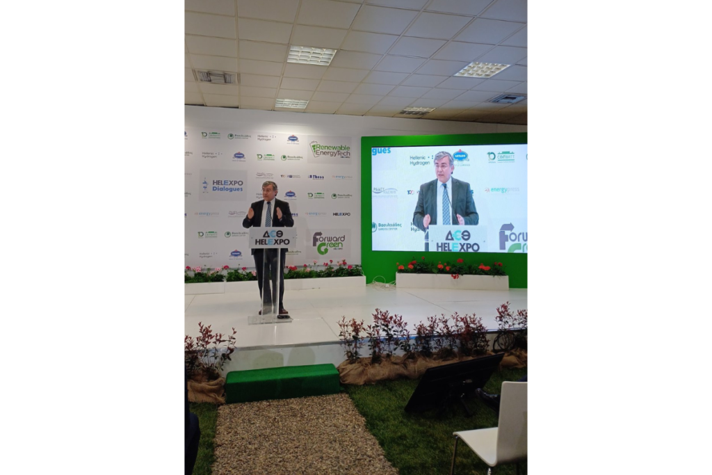 Ο Γενικός Γραμματέας, που τοποθετήθηκε συνολικά σε 10 εκδηλώσεις στο πλαίσιο της έκθεσης, στο σύντομο χαιρετισμό του αναφέρθηκε στην πρόοδο που έχει συντελεστεί στη χώρα τα προηγούμενα 4,5 χρόνια στους τομείς της διαχείρισης αποβλήτων και της μετάβασης στην πράσινη ανάπτυξη. Επισήμανε τη σημαντική εξέλιξη των έργων διαχείρισης αποβλήτων και λυμάτων, στη διαδικασία ενεργειακής αξιοποίησης από τα υπολείμματα των αποβλήτων, καθώς και στα διαρκώς αυξανόμενα ποσοστά των ΑΠΕ στο ενεργειακό μείγμα της χώρας.