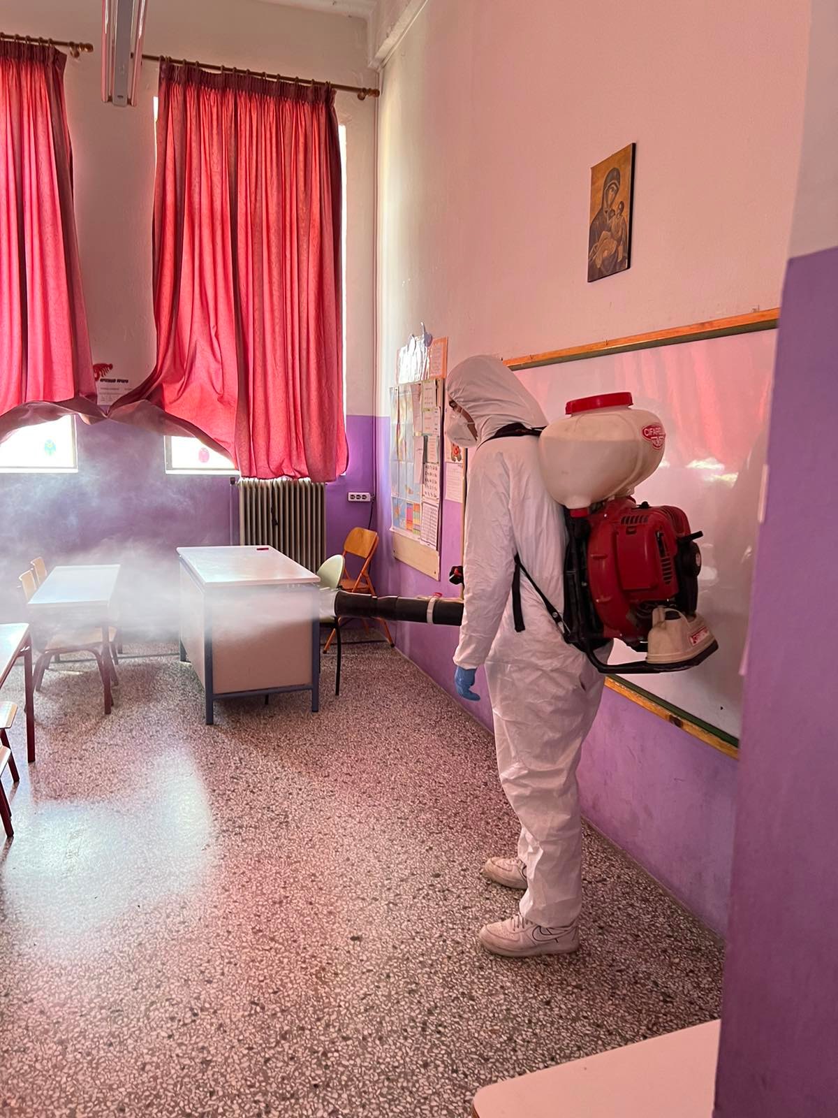 «Με οδηγίες του δημάρχου μας, Παντελή Τσακίρη, φροντίσαμε ώστε τα σχολεία να ανοίξουν μετά τις διακοπές του Πάσχα πλήρως εφοδιασμένα με αντισηπτικά και απολυμαντικά, όπως προβλέπεται από τα μέτρα προστασίας από τον Covid-19. Επίσης, κάναμε απολυμάνσεις και απεντομώσεις», ανέφερε ο κ. Χατζηαντωνίου.