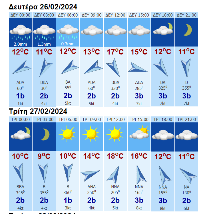 ΠΡΟΓΝΩΣΗ ΓΙΑ ΣΗΜΕΡΑ ΔΕΥΤΕΡΑ 26-02-2024