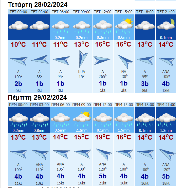 ΠΡΟΓΝΩΣΗ ΓΙΑ ΤΗΝ ΤΕΤΑΡΤΗ 28-02-2024