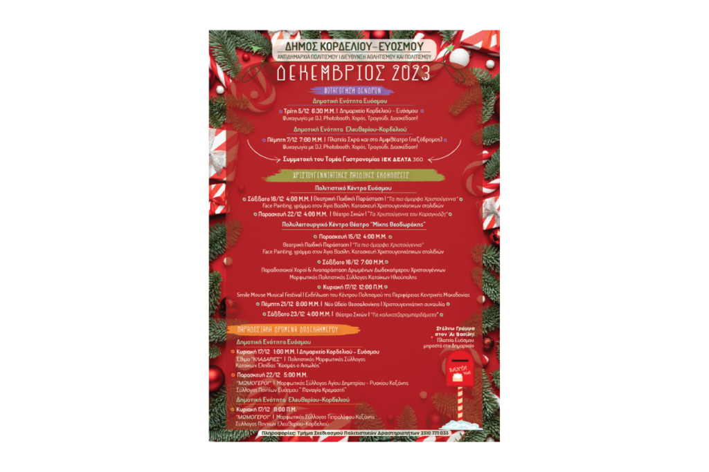 Ακολουθεί το αναλυτικό πρόγραμμα των Χριστουγεννιάτικων εκδηλώσεων 2023