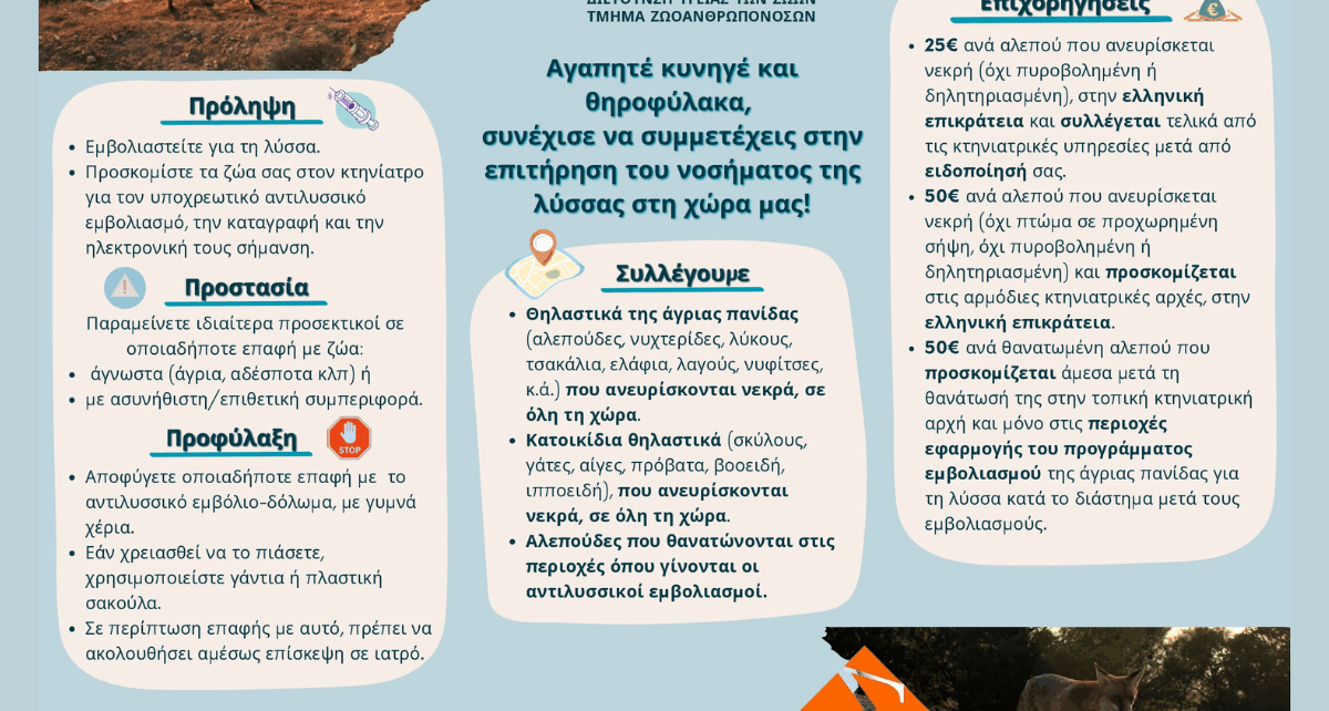 Έναρξη ενεργητικής επιτήρησης λύσσας στην ΠΚΜ 2025