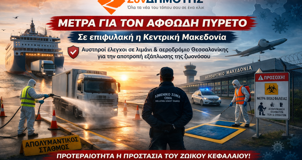 Σε κατάσταση αυξημένης επιφυλακής βρίσκεται η Περιφέρεια Κεντρικής Μακεδονίας, μετά την επιβεβαίωση κρούσματος αφθώδους πυρετού στη Λέσβο. Οι αρμόδιες αρχές ενεργοποιούν άμεσα αυστηρά μέτρα σε βασικές πύλες εισόδου, με στόχο την προστασία του ζωικού κεφαλαίου και την αποτροπή εξάπλωσης της επικίνδυνης ζωονόσου. 🔴 Έκτακτη κινητοποίηση στη Θεσσαλονίκη Σε άμεση κινητοποίηση προχώρησε η Περιφέρεια Κεντρικής Μακεδονίας, […]