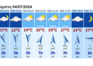 Νεφώσεις παροδικά αυξημένες με τοπικές βροχές και μεμονωμένες καταιγίδες. Βελτίωση αναμένεται από το απόγευμα στα βόρεια.Λίγα χιόνια θα πέσουν στα κεντρικά και βόρεια ορεινά.Οι άνεμοι θα πνέουν από βόρειες διευθύνσεις 4 με 5 και στα πελάγη τοπικά 6 μποφόρ.Η θερμοκρασία θα σημειώσει πτώση και θα φτάσει στα βόρεια τους 14 με 15 βαθμούς, στα ανατολικά […]