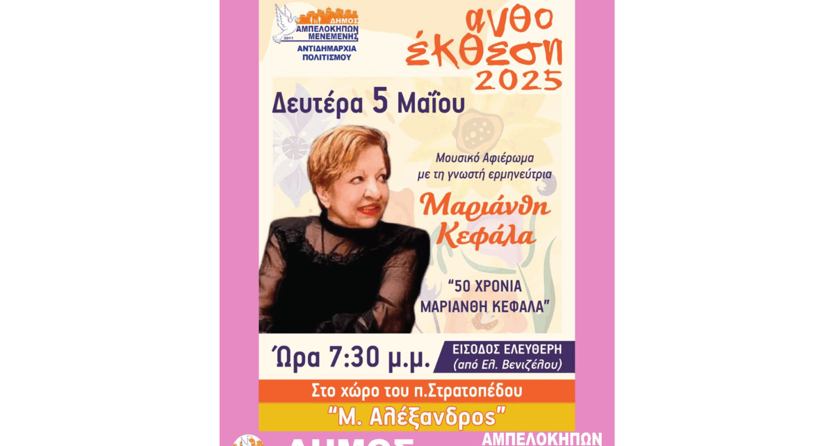 Δ. Αμπελοκήπων-Μενεμένης: Ανθοέκθεση 2025 – Μια ξεχωριστή μουσική βραδιά!