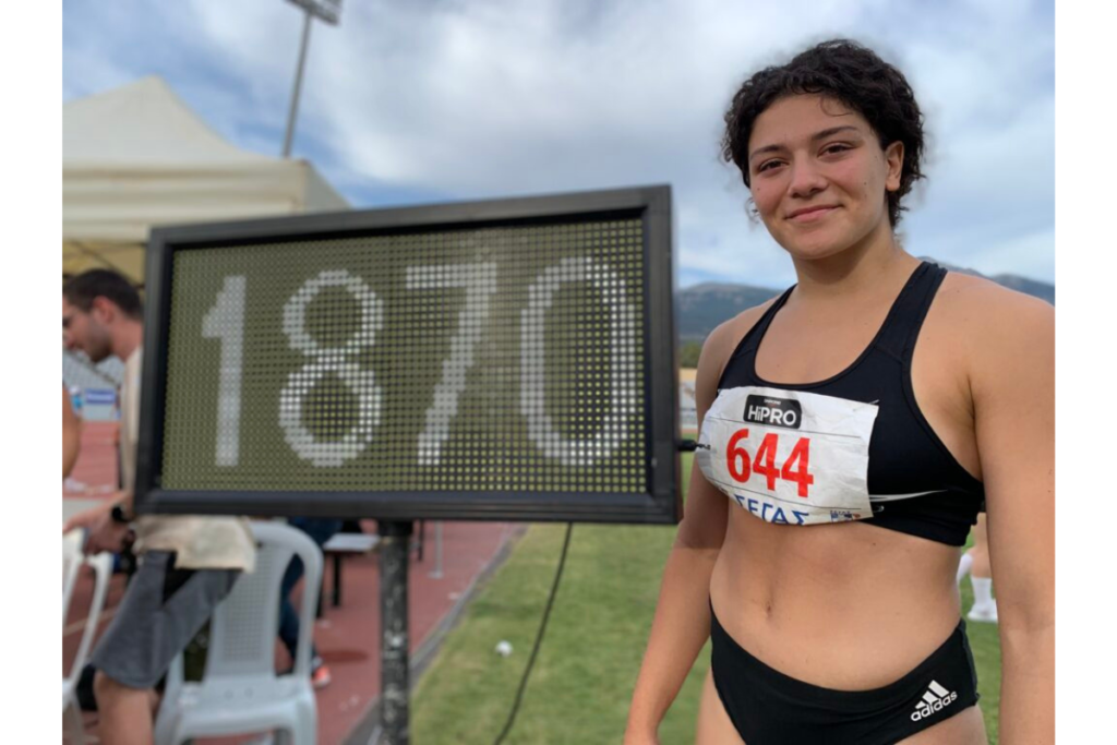Από την ρίψη των 17.80 μέτρων που πέτυχε στην 1η Ιουνίου στο Κιλκίς, μέχρι τα εντυπωσιακά 18.22, 18.50, 18.65 και 18.70 μέτρα, απέδειξε ότι είναι η κορυφαία αθλήτρια παγκοσμίως στη σφαιροβολία στην ηλικία της με σφαίρα 3 κιλών και μας γεμίζει με αισιοδοξία για το μέλλον του αθλητισμού μας.