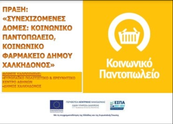Ξεκινά σήμερα Δευτέρα 2 Δεκεμβρίου 2024 η διαδικασία υποβολής των αιτήσεων των δικαιούχων που πληρούν τις απαιτούμενες προϋποθέσεις προς ένταξη στο Κοινωνικό Παντοπωλείο και του Κοινωνικό Φαρμακείο του Δήμου Χαλκηδόνος, το οποίο εντάσσεται στο Επιχειρησιακό Πρόγραμμα «Κεντρική Μακεδονία 2021 – 2027».