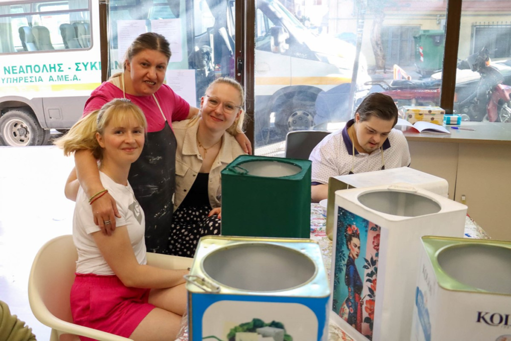 Για αρκετές ώρες της ημέρας και ανά μικρές ομάδες έγιναν μέρος της παρέας των φιλοξενούμενων στα ΚΔΑΠμεΑ όπου συμμετείχαν στις δραστηριότητες χειροτεχνίας, ντεκουμπάζ, ανακύκλωσης αλλά και στο πλυντήριο που λειτουργεί στη δομή των Συκεών. Ανάλογη ήταν η εμπειρία τους και στις ΣΥΔ όπου μαγείρεψαν μακαρόνια με κιμά στρώνοντας το τραπέζι μαζί με τους ωφελούμενους και απολαμβάνοντας από κοινού τις γαστριμαργικές δημιουργίες τους!