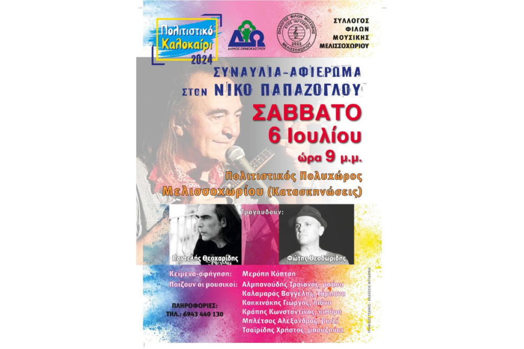 Δ. Ωραιοκάστρου – Συλλ. Φίλων Μουσικής Μελισσοχωρίου: Συναυλία-αφιέρωμα στο Νίκο Παπάζογλου