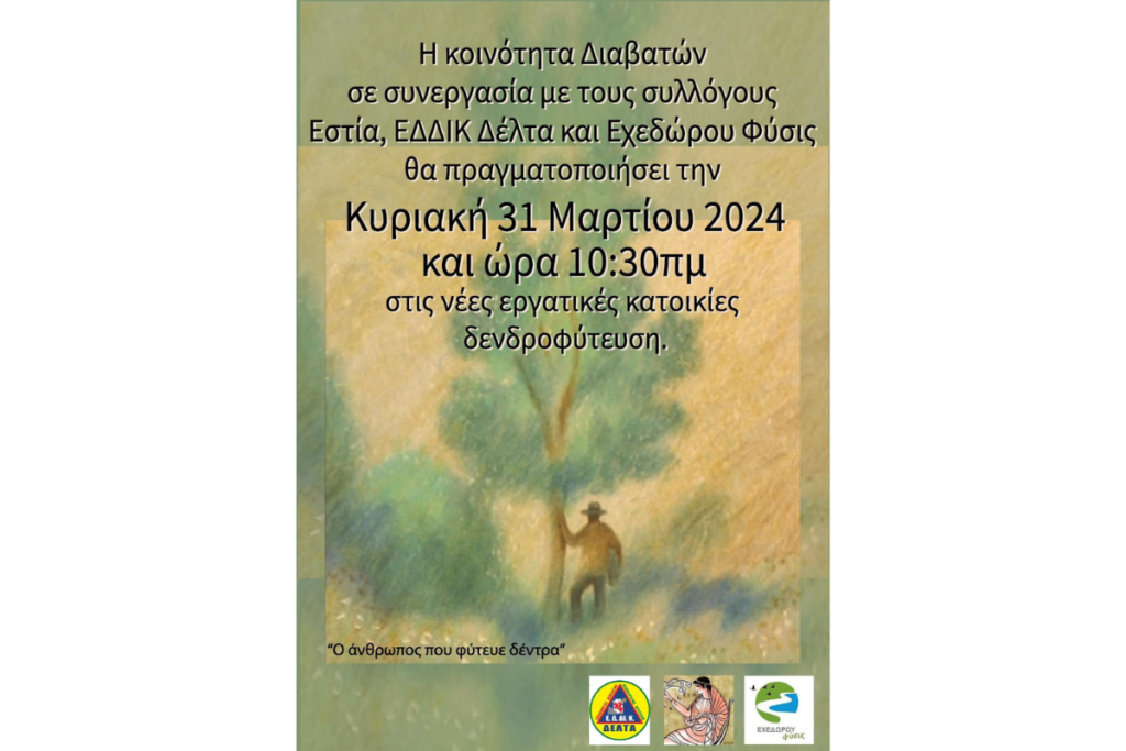 Η κοινότητα των Διαβατών σε συνεργασία με τους συλλόγους Εστία ΕΔΔΙΚ Δέλτα και Εχεδώρου Φύσις θα πραγματοποιήσει την Κυριακή 31 Μαρτίου 2024 και ώρα 10:30 στις νέες εργατικές κατοικίες διαδροφύτευση. Σύμφωνα με την ανάρτηση του Αντώνη Μάνου στα social αναφέρει: