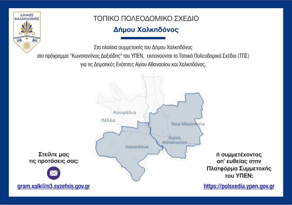 Συμμετοχή του Δήμου Χαλκηδόνος στο πρόγραμμα «Κωνσταντίνος Δοξιάδης» – Εκπόνηση Τοπικών Πολεοδομικών Σχεδίων για τις Δημοτικές Ενότητες Αγίου Αθανασίου και Χαλκηδόνας