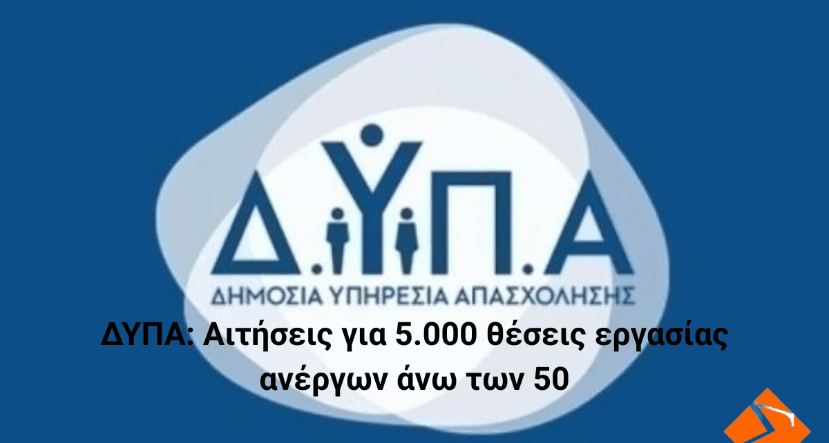 Η ΔΥΠΑ ξεκίνησε τις αιτήσεις για ανέργους άνω των 50 ετών, μέσω νέου προγράμματος που επιχορηγεί επιχειρήσεις για την πρόσληψη 5.000 ωφελουμένων. Το πρόγραμμα στοχεύει στη δημιουργία νέων θέσεων πλήρους απασχόλησης με ενισχυμένη επιδότηση μισθού και εισφορών.