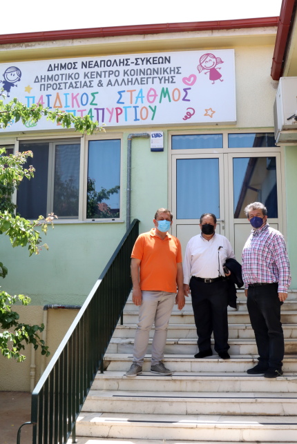 Επόμενη στάση ήταν ο Παιδικός Σταθμός της Επταπυργίου, όπου ενημερώθηκαν από τον πρόεδρο του Δημοτικού Κέντρου Κοινωνικής Προστασίας και Αλληλεγγύης Αρίστο Γαλανό για την οργάνωση, τον εξοπλισμό και τη λειτουργία του, και έμειναν εντυπωσιασμένοι από την πρωτοποριακή αυλή-Παιδική Χαρά του. Στη συνέχεια, οι φιλοξενούμενοι επισκέφθηκαν το ΚΗΦΗ Συκεών, όπου συνομίλησαν με ωφελούμενους και ενημερώθηκαν για την οργάνωση και τη λειτουργία του, ενώ ακολούθησε η επίσκεψη στον Βρεφικό Σταθμό «Ακροπόλ», όπου ξεναγήθηκαν στους χώρους της δομής και στα μαγειρεία, τα οποία καθημερινά παράγουν την τροφή για τα χιλιάδες παιδιά των Βρεφονηπιακών και Παιδικών Σταθμών, τα ΚΗΦΗ αλλά και το σύνολο των δομών του δήμου.