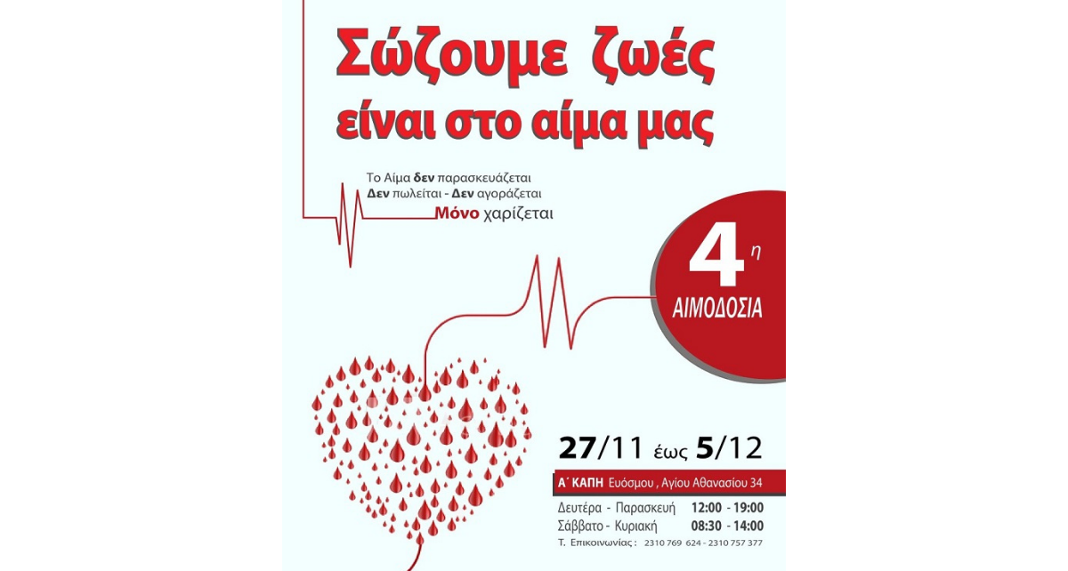 Ο Δήμος Κορδελιού Ευόσμου μετατρέπει για εννέα ημέρες το Α’ ΚΑΠΗ Ευόσμου σε κέντρο Αιμοδοσίας