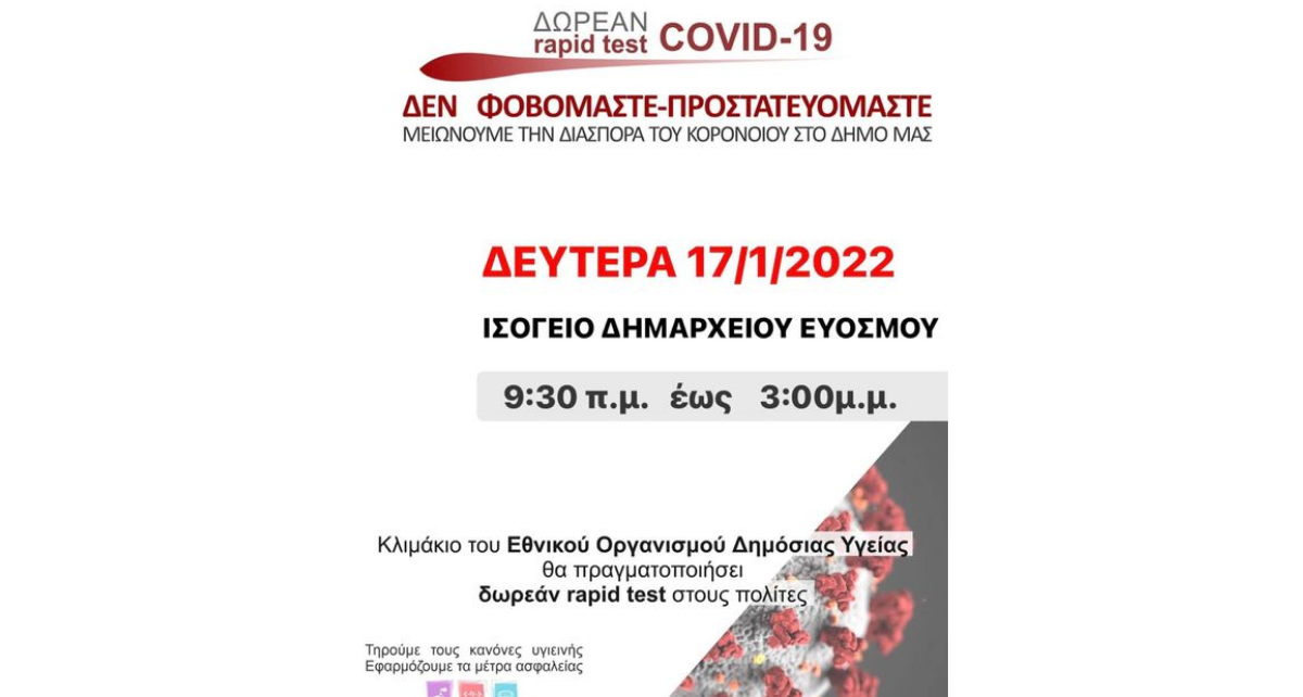 Συνεχίζεται η διενέργεια ΔΩΡΕΑΝ RAPID TEST