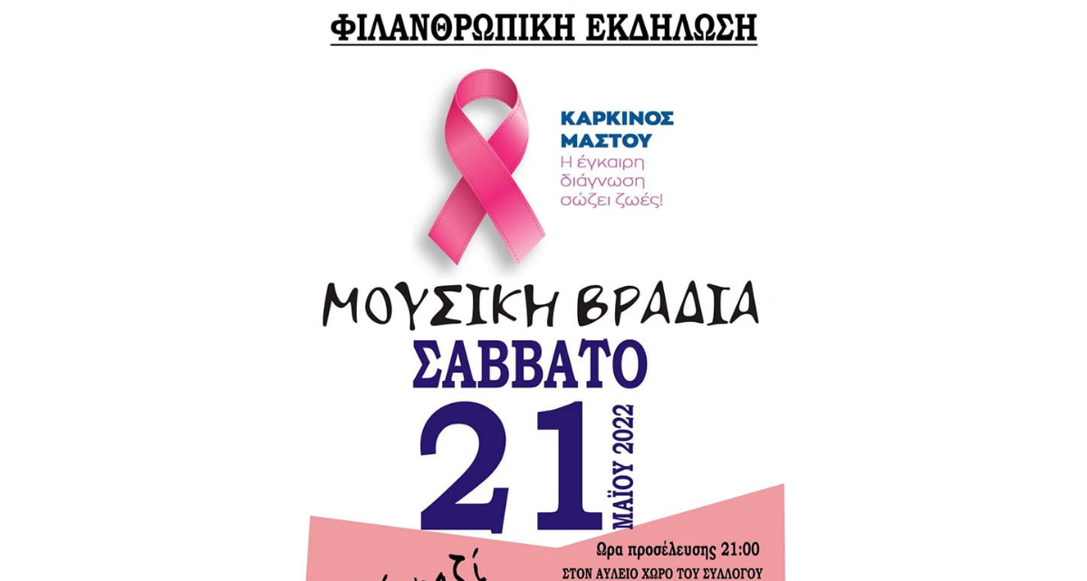 Μια όμορφη μουσική βραδιά, φιλανθρωπικού χαρακτήρα, διοργανώνει ο Μορφωτικός & Πολιτιστικός Σύλλογος Χαλκηδόνας, το Σάββατο 21/5/22 στον αύλειο χώρο του.