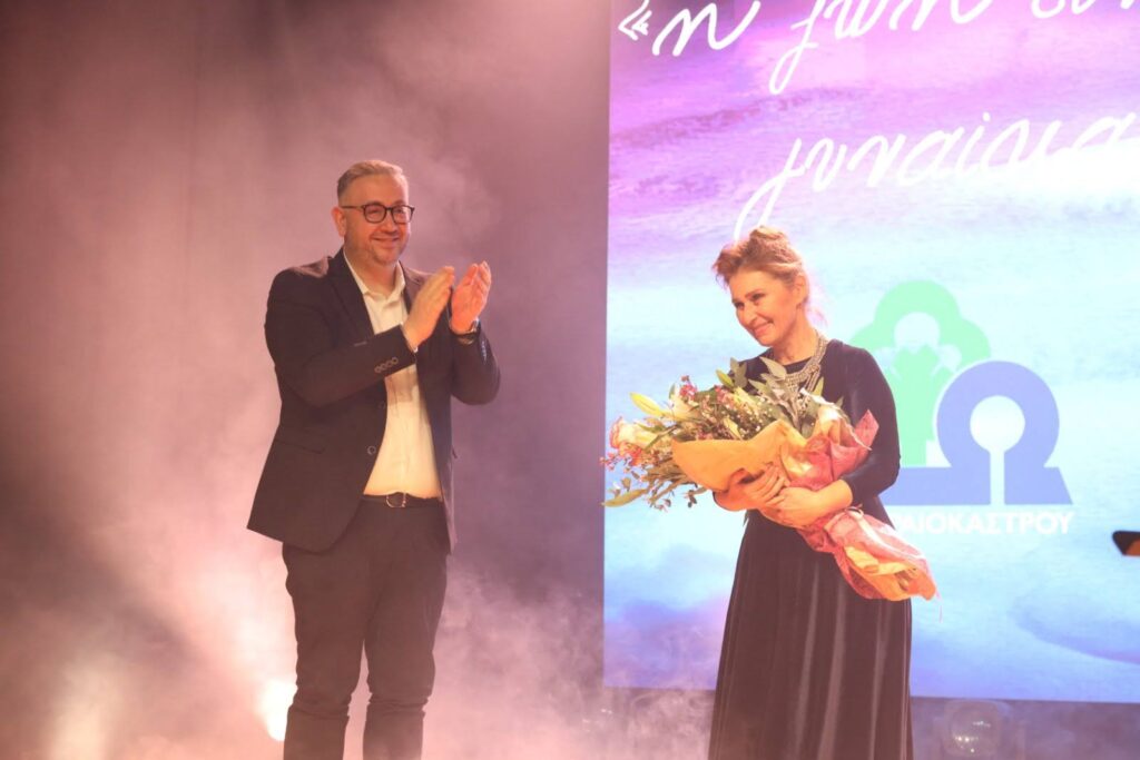 Το κοινό χειροκρότησε με ενθουσιασμό τη Νέλλυ Δελή και ο δήμαρχος Ωραιοκάστρου, Παντελής Τσακίρης, ανέβηκε στη σκηνή. Της προσέφερε μια ανθοδέσμη και μίλησε για το σπουδαίο έργο και την προσφορά της.