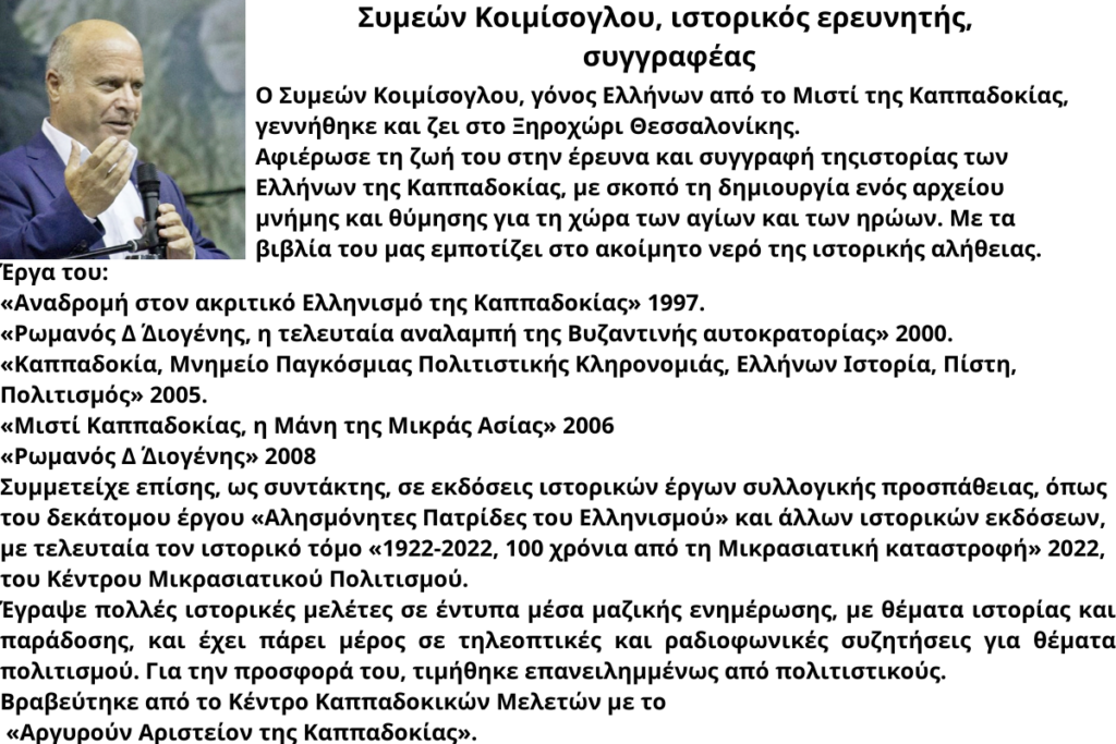ευχαριστούμε θερμά τον κ. Συμεών Κοιμίσογλου, ιστορικό ερευνητικό, συγγραφέα.