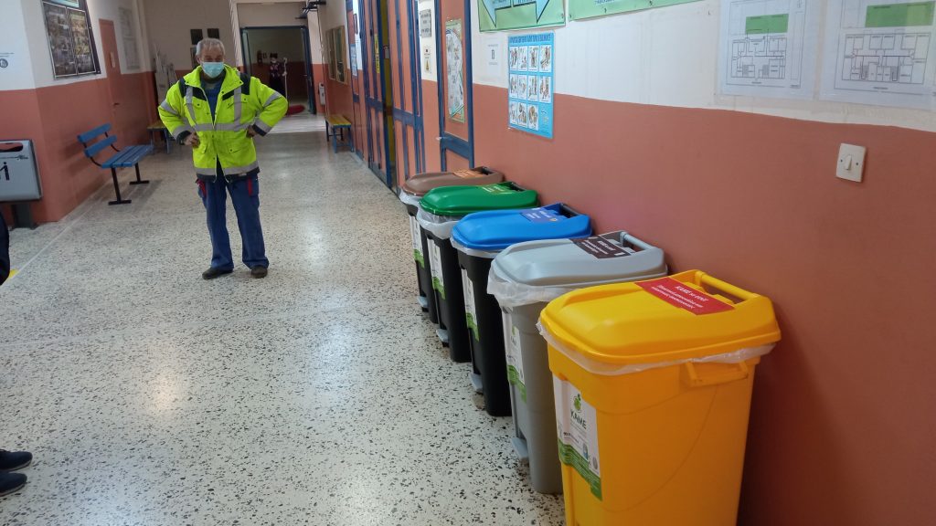 Σε κάθε ένα από αυτά τα σχολεία τοποθετήθηκαν πέντε ειδικοί κάδοι όπου μαθητές και εκπαιδευτικοί θα μπορούν να απορρίπτουν χαρτί και χαρτόνι, πλαστικές συσκευασίες και μπουκάλια, συσκευασίες αλουμινίου και λευκοσιδηρου, γυάλινες συσκευασίες, αλλά και τηγανέλαιο. Οι πρώτοι κάδοι διανεμήθηκαν στο πλαίσιο του προγράμματος «Μειώνω – Επαναχρησιμοποιώ – Κομποστοποιώ στο Δήμο Δέλτα» (Κ.Α.Μ.Ε.).