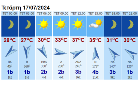 ΠΡΟΓΝΩΣΗ ΓΙΑ THΝ ΤΕΤΑΡΤΗ 24-07-2024