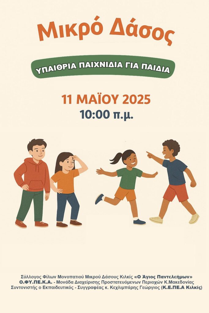 Μία όμορφη εκδήλωση στη φύση και στο παρόχθιο δάσος του ποταμού Αξιού διοργανώνουν την Κυριακή 11 Μαΐου ο Σύλλογος Φίλων Μονοπατιού Μικρού Δάσους Κιλκίς «Ο Άγιος Παντελεήμων» και η Μονάδα Διαχείρισης Προστατευόμενων Περιοχών Κεντρικής Μακεδονίας του ΟΦΥΠΕΚΑ.