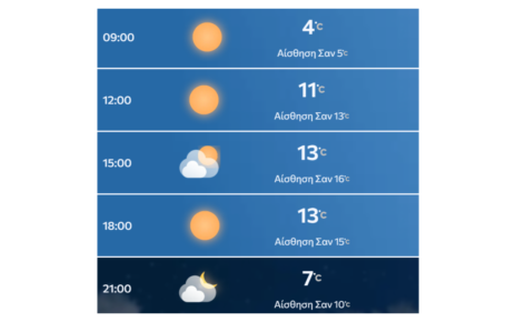 - Σήμερα και αύριο, η μέγιστη τιμή της θερμοκρασίας θα φθάσει:
