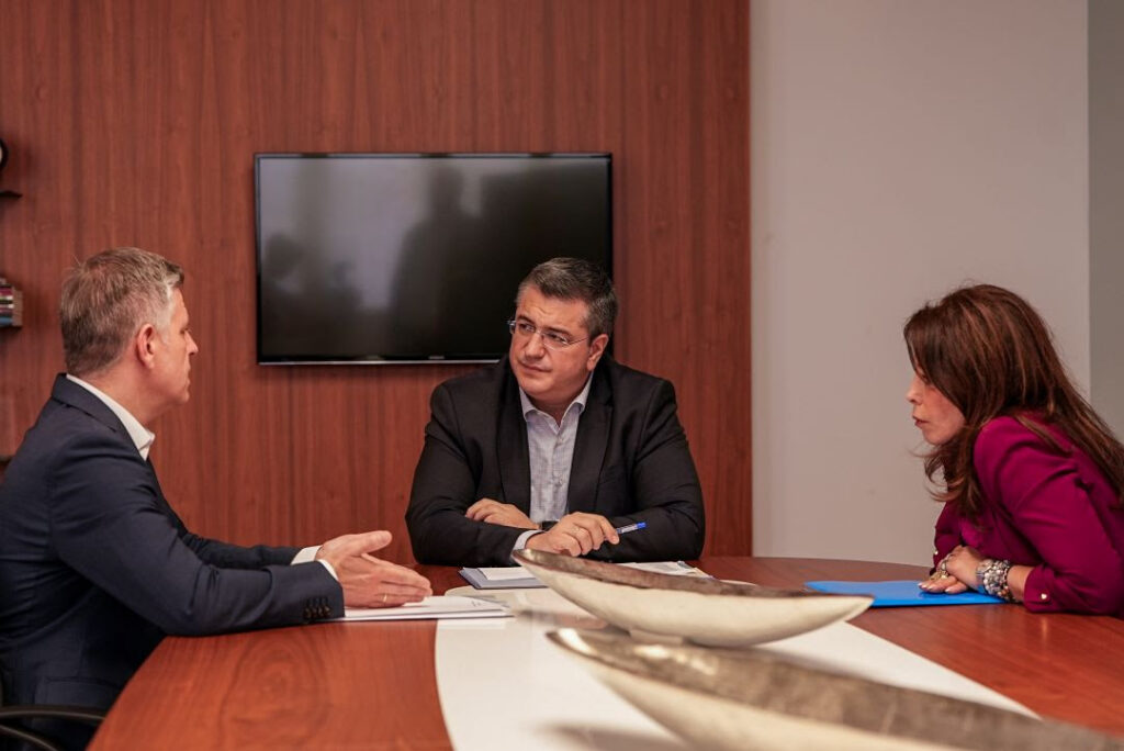 Τελετή παράδοσης και παραλαβής της Αντιπεριφέρειας Θεσσαλονίκης από τη Βούλα Πατουλίδου στον Κώστα Γιουτίκα πραγματοποιήθηκε σήμερα στο Γραφείο του Περιφερειάρχη Κεντρικής Μακεδονίας Απόστολου Τζιτζικώστα, στο Κτίριο Υπηρεσιών της Περιφέρειας στη δυτική Θεσσαλονίκη.
