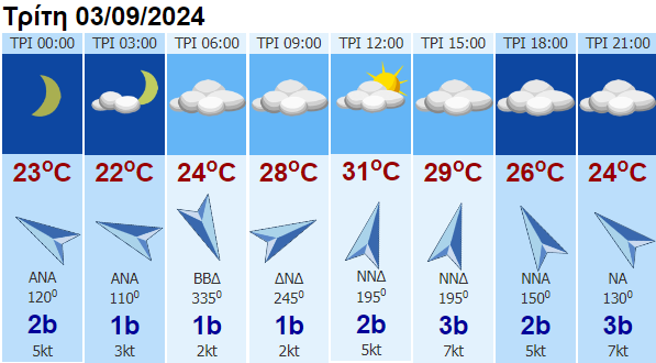 ’νεμοι: Μεταβλητοί 3 με 4 μποφόρ και πρόσκαιρα το μεσημέρι – απόγευμα νότιοι με την ίδια ένταση.
