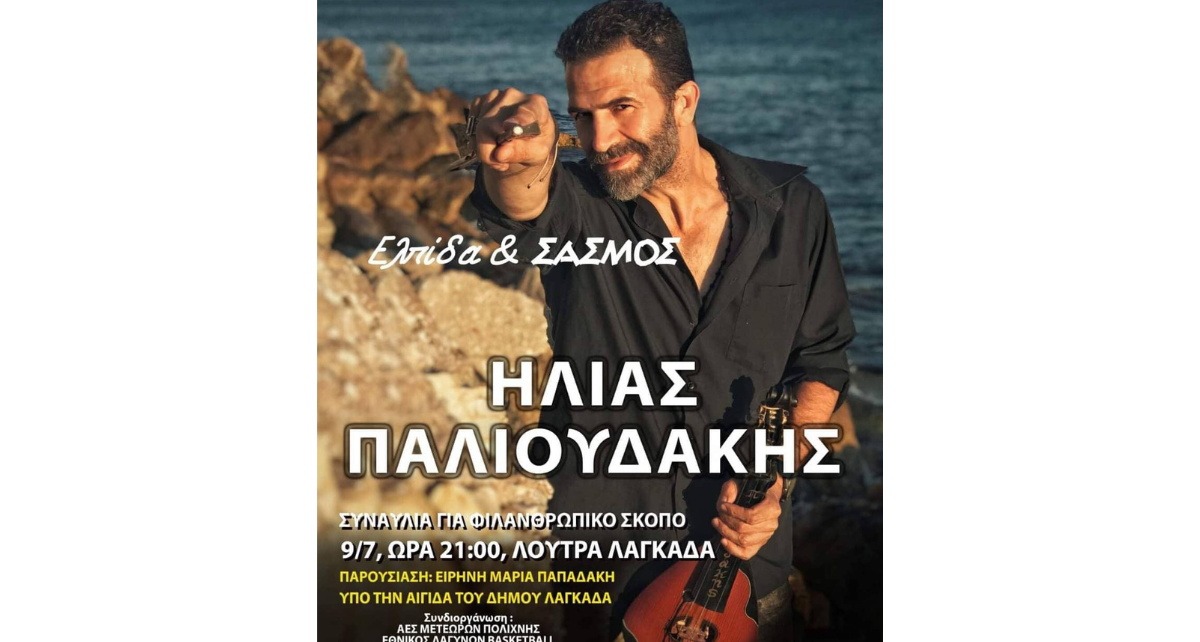 Στους ρυθμούς της κρητικής μουσικής θα ταξιδέψει για πρώτη φορά το κοινό της Βόρειας Ελλάδας ο καλλιτέχνης Ηλίας Παλιουδάκης με μια μοναδική συναυλία το Σάββατο 9 Ιουλίου 2022 στις 21.00 στα Λουτρά Λαγκαδά.