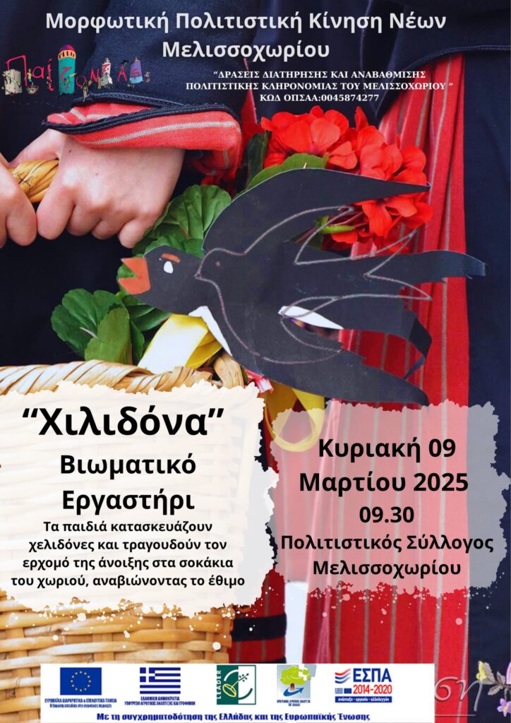 Ο ερχομός της άνοιξης φέρνει μαζί του χαρά, τραγούδι και ένα όμορφο παραδοσιακό έθιμο! Στο βιωματικό σεμινάριο που διοργανώνει ο σύλλογός μας και υλοποιεί το εργαστήρι Παίζοντας σε Παραδοσιακά Μονοπάτια, τα παιδιά θα φτιάξουν τις δικές τους χειροποίητες χελιδόνες και θα βγουν στα σοκάκια της Μπάλτζας, για να τραγουδήσουν το παραδοσιακό τραγούδι της Χελιδόνας”! 🎶🐦
