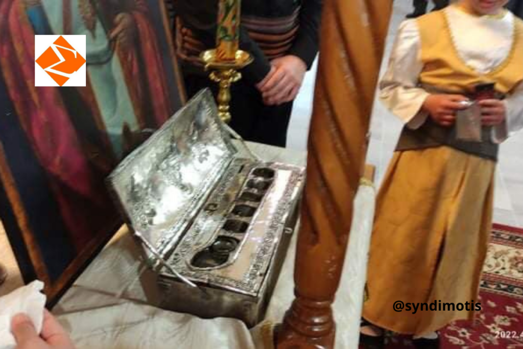Συγκεκριμένως, εχθές, Σάββατο του Λαζάρου, 16 Απριλίου 2022, στις 6:30 το απόγευμα, ο Σεβ. Μητροπολίτης Σερρών και Νιγρίτης κ. Θεολόγος, επικεφαλής του ιερού κλήρου, υπεδέχθη, στα προπύλαια του νεόδμητου Ιερού Ναού Αγ. Βασιλείου Λευκώνος, το θαυματόβρυτο Λείψανο του Μεγάλου Καπαδόκου Ιεράρχου, το οποίο εκόμισε ο Α’ Γραμματεύς της Ιεράς Συνόδου της Εκκλησίας της Ελλάδος, Πανοσιολ. Αρχιμανδρίτης π. Δωρόθεος Πάπαρης. Παρόντες κατά την υποδοχή ήταν μεταξύ άλλων και οι Βουλευτές του Νομού Σερρών κ. κ. Φ. Αραμπατζή, Αν. Χατζηβασιλείου, Θ. Λεονταρίδης και Κ. Μπούμπας, ο Δήμαρχος Σερραίων κ. Αλ. Χρυσάφης, ο τέως Νομάρχης Σερρών κ. Στ. Φωτιάδης, μέλη πολιτιστικών Συλλόγων και ο φιλάγιος λαός του Θεού.