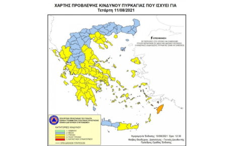 Υψηλός κίνδυνος πυρκαγιάς για τη Θεσσαλονίκη (κατηγορία κινδύνου 3) την Τετάρτη, 11 Αυγούστου 2021 Σύμφωνα με το Χάρτη Πρόβλεψης Κινδύνου Πυρκαγιάς που εκδίδει η Γενική Γραμματεία Πολιτικής Προστασίας του Υπουργείου Προστασίας του Πολίτη (www.civilprotection.gr), για την Τετάρτη, 11 Αυγούστου 2021, προβλέπεται πολύ υψηλός κίνδυνος πυρκαγιάς (κατηγορία κινδύνου 4) για τις εξής περιοχές: Περιφέρεια Νοτίου Αιγαίου […]