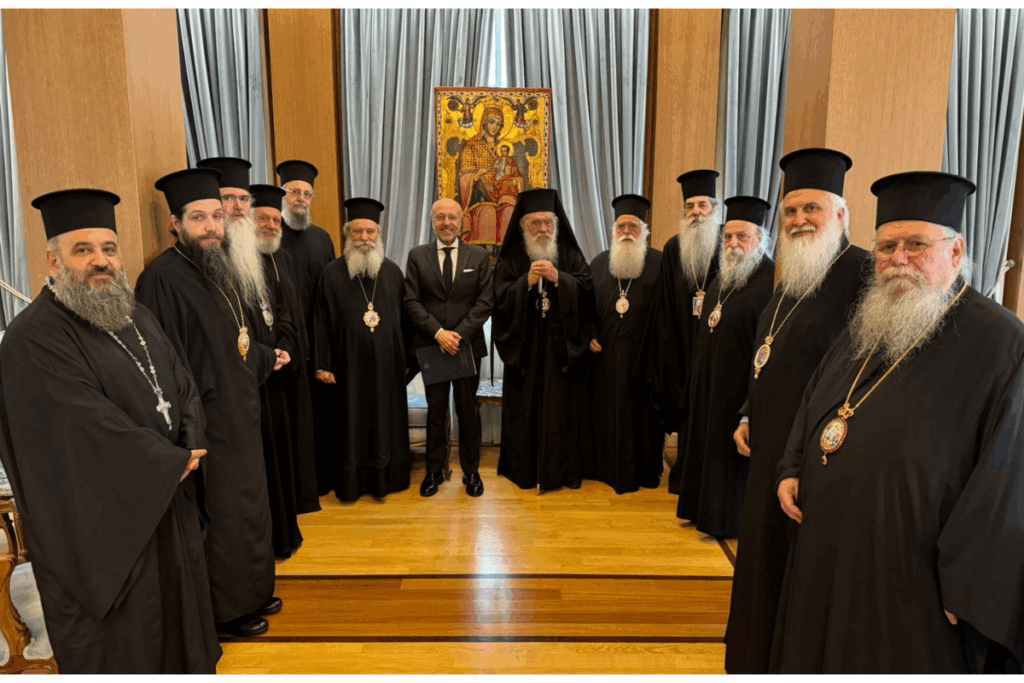 Ο Υφυπουργός Υγείας, αρμόδιος για θέματα Ψυχικής Υγείας και Εξαρτήσεων, κ. Δημήτρης Βαρτζόπουλος, πραγματοποίησε σήμερα επίσημη συνάντηση με τον Μακαριώτατο Αρχιεπίσκοπο Αθηνών και πάσης Ελλάδος κ. κ. Ιερώνυμο Β’ και με τα μέλη της Ιεράς Συνόδου της Εκκλησίας της Ελλάδος, με τη συμμετοχή και του Διευθυντή του Γραφείου της Αντιπροσωπείας της Εκκλησίας της Ελλάδος στην ΕΕ Επισκόπου Τανάγρας κ. Απόστολου.