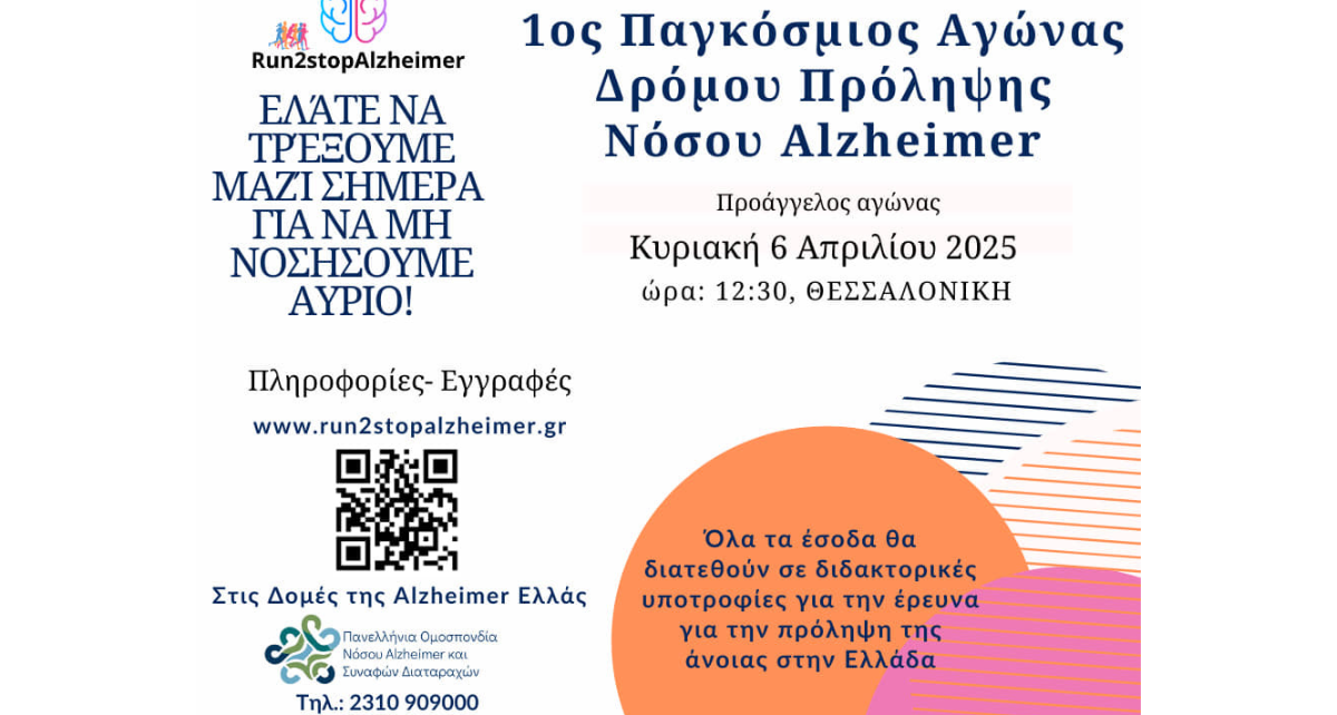 ΑΥΤΟΣ Ο ΑΓΩΝΑΣ ΜΑΣ ΑΦΟΡΑ ΟΛΟΥΣ ΤΟ ΙΔΙΟ… Ο «1ος ΠΑΓΚΟΣΜΙΟΣ ΑΓΩΝΑΣ ΔΡΟΜΟΥ ΠΡΟΛΗΨΗΣ ΝΟΣΟΥ ALZHEIMER ΣΤΗ ΘΕΣΣΑΛΟΝΙΚΗ»… πλησιάζει…. Ο στόχος μας παραμένει ο ίδιος και οι επαφές μας με τις αρχές της πόλης συνεχίζονται ώστε τον Σεπτέμβριο ΟΛΟΙ ΜΑΖΙ να στείλουμε το πιο αισιόδοξο μήνυμα από την Ελλάδα μας και την Θεσσαλονίκη μας, σε […]