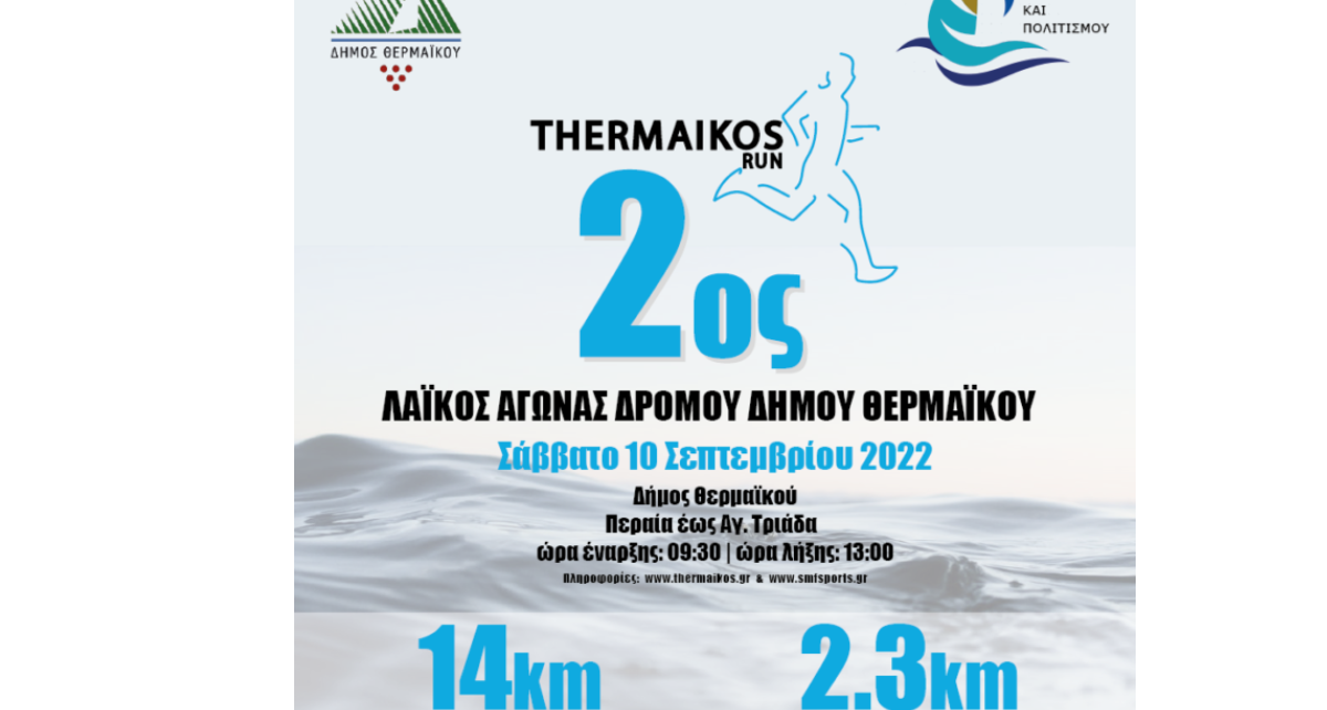 Το γραφείο Αθλητισμού & Πολιτισμού του Δήμου Θερμαϊκού διοργανώνει στις 10 Σεπτεμβρίου 2022 στην Περαία λαϊκό αγώνα δρόμου με τον διακριτικό τίτλο…