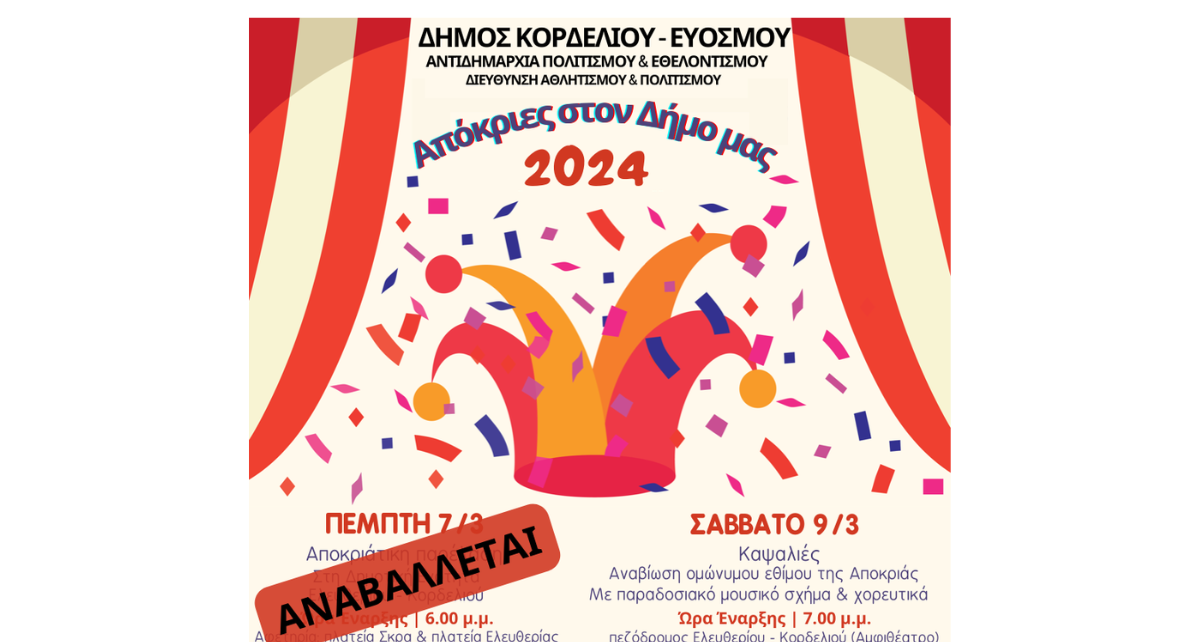 Αποκριάτικη παρέλαση και εκδηλώσεις για τα Κούλουμα στο Δήμο Κορδελιού – Ευόσμου