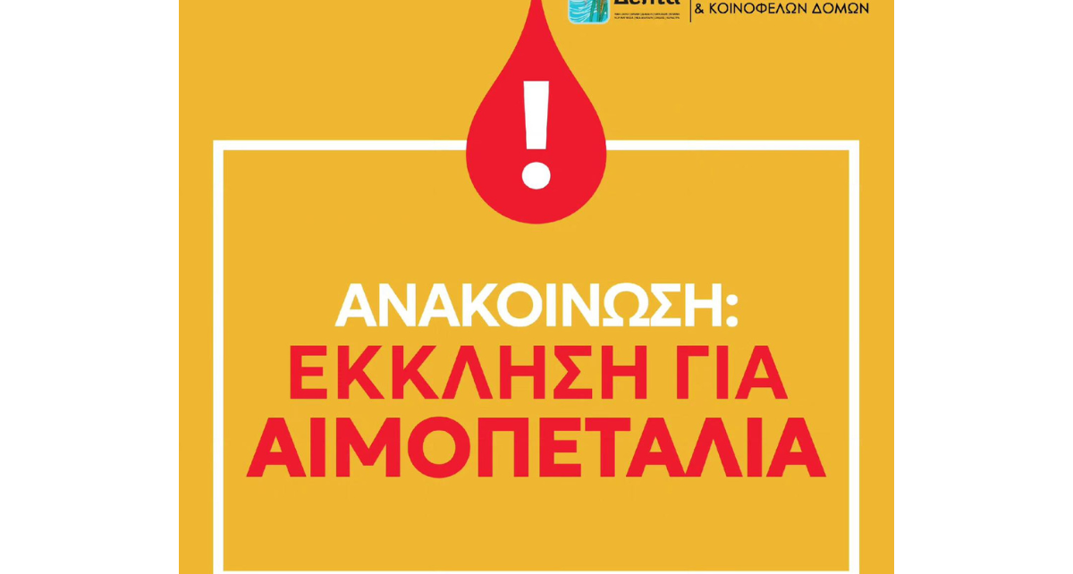 Αντιδημαρχία Πολιτισμού & Κοινοφελών Δομών Δήμου Δέλτα: Έκκληση για αιμαπετάλια