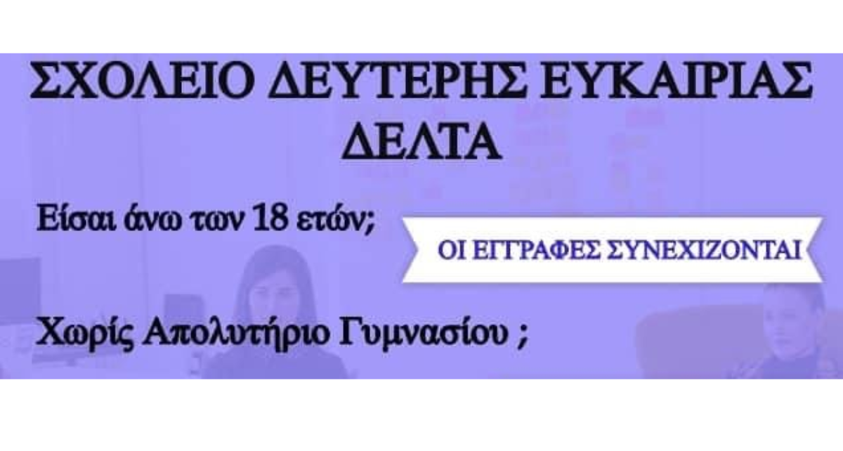 Σχολείο Δεύτερης Ευκαιρίας Δέλτα- Οι εγγραφές συνεχίζονται