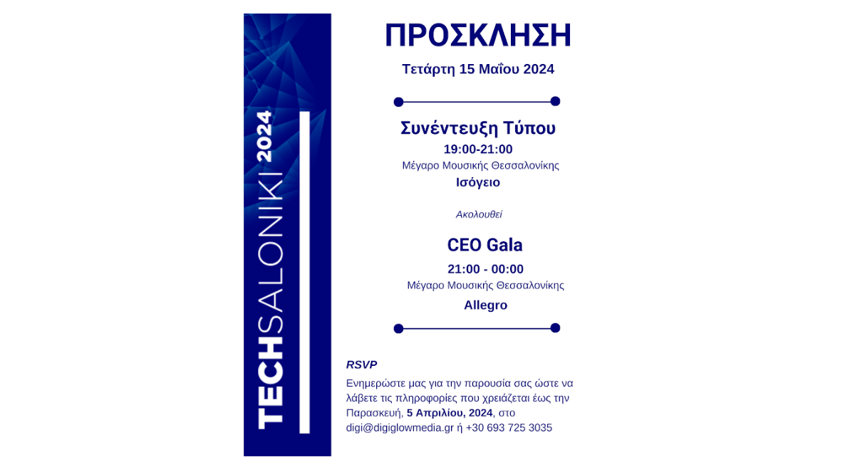 Digiglow: Πρόσκληση για Press Conference του TechSaloniki2024 (15/05/2024)