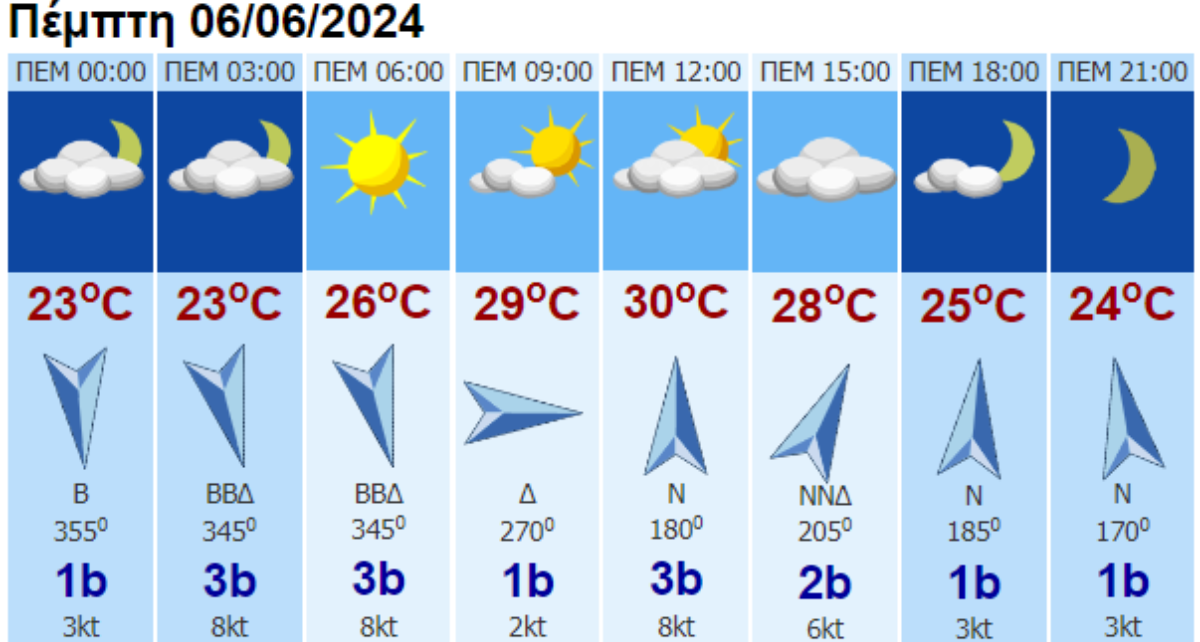ΠΡΟΓΝΩΣΗ ΓΙΑ ΑΥΡΙΟ ΣΑΒΒΑΤΟ 08-06-2024 ΓΕΝΙΚΑ ΧΑΡΑΚΤΗΡΙΣΤΙΚΑ Γενικά αίθριος καιρός με πρόσκαιρες νεφώσεις στα ηπειρωτικά το μεσημέρι και το απόγευμα, οπότε είναι πιθανό στα βόρεια ορεινά να σημειωθούν τοπικοί όμβροι.Οι άνεμοι θα πνέουν από βόρειες διευθύνσεις 3 με 5, στο Αιγαίο 5 με 6 και στις ανατολικές Κυκλάδες τοπικά 7 μποφόρ.Η θερμοκρασία προβλέπεται να σημειώσει […]