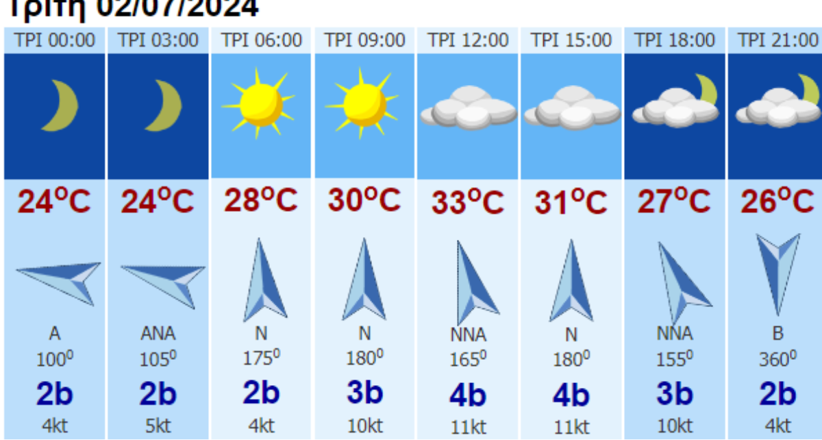 Ο καιρός σήμερα Τρίτη 2/7/24