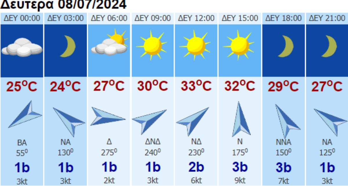 Ο καιρός σήμερα Δευτέρα 08/07/2024