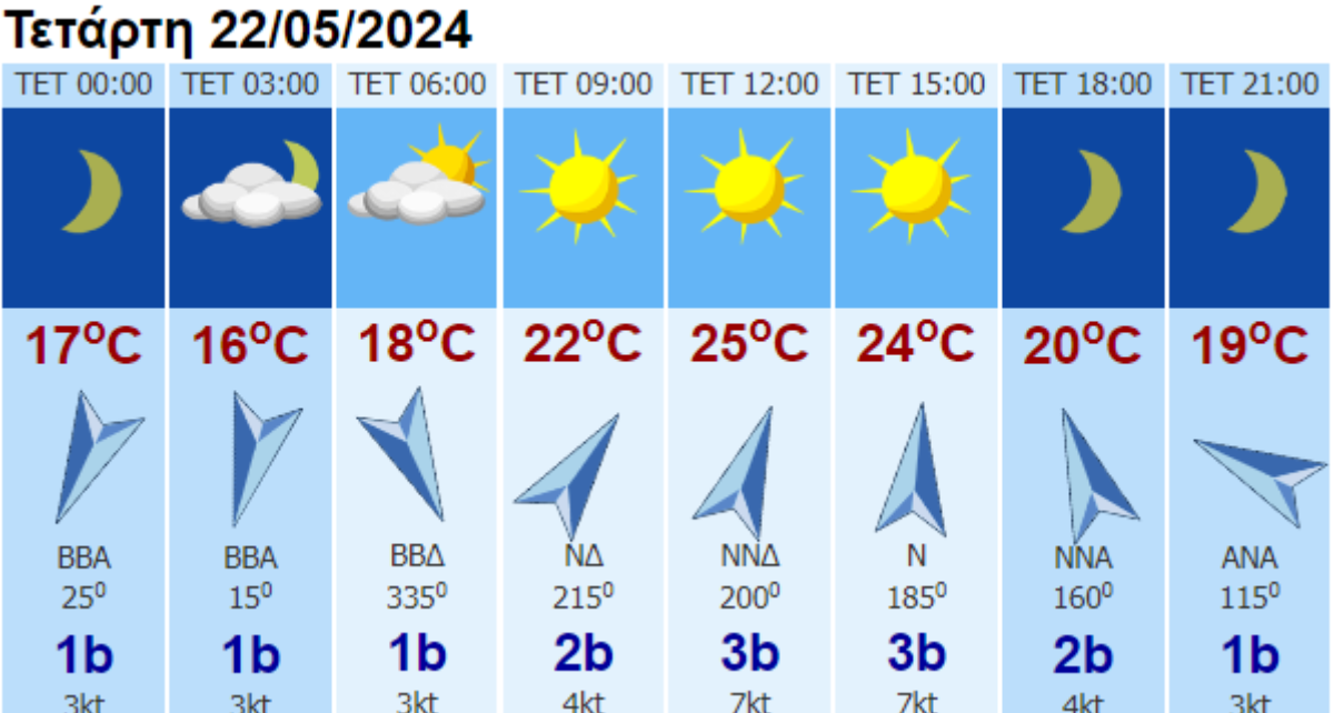 Ο καιρός σήμερα Τετάρτη 22/05/2024