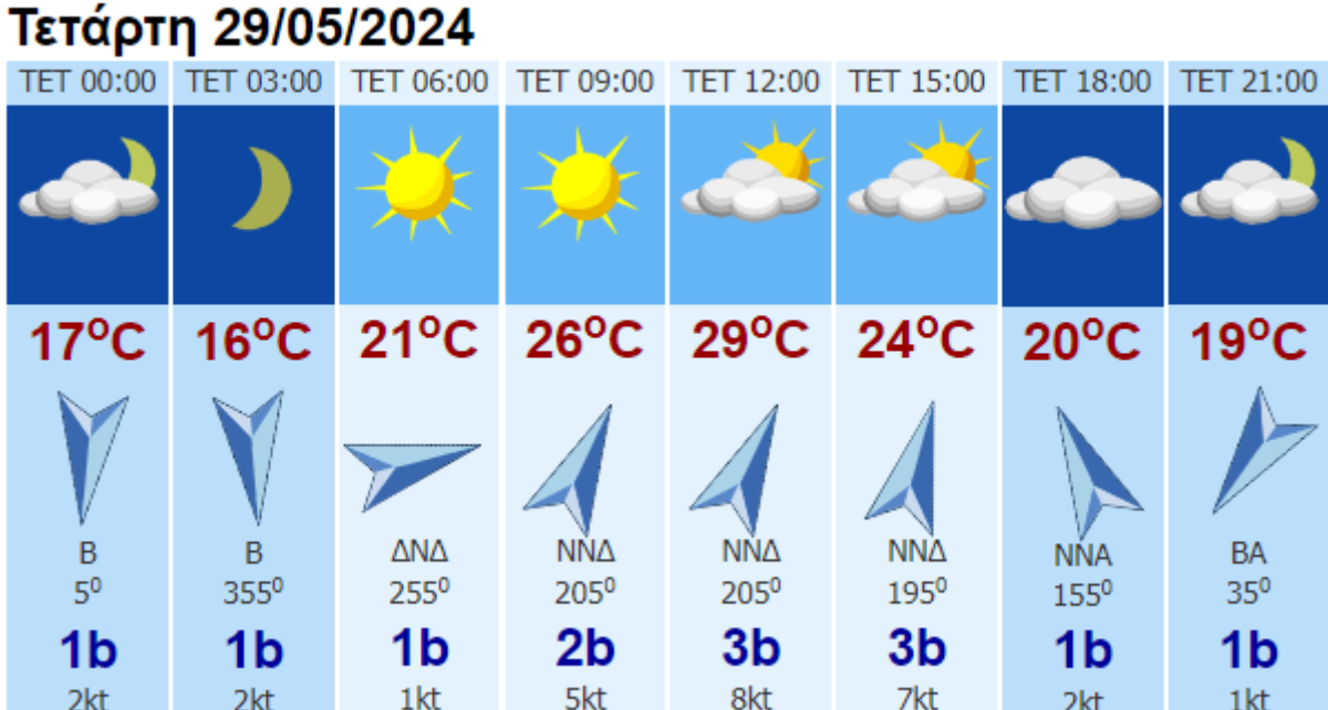 Ο καιρός σήμερα Τετάρτη 29/05/2024