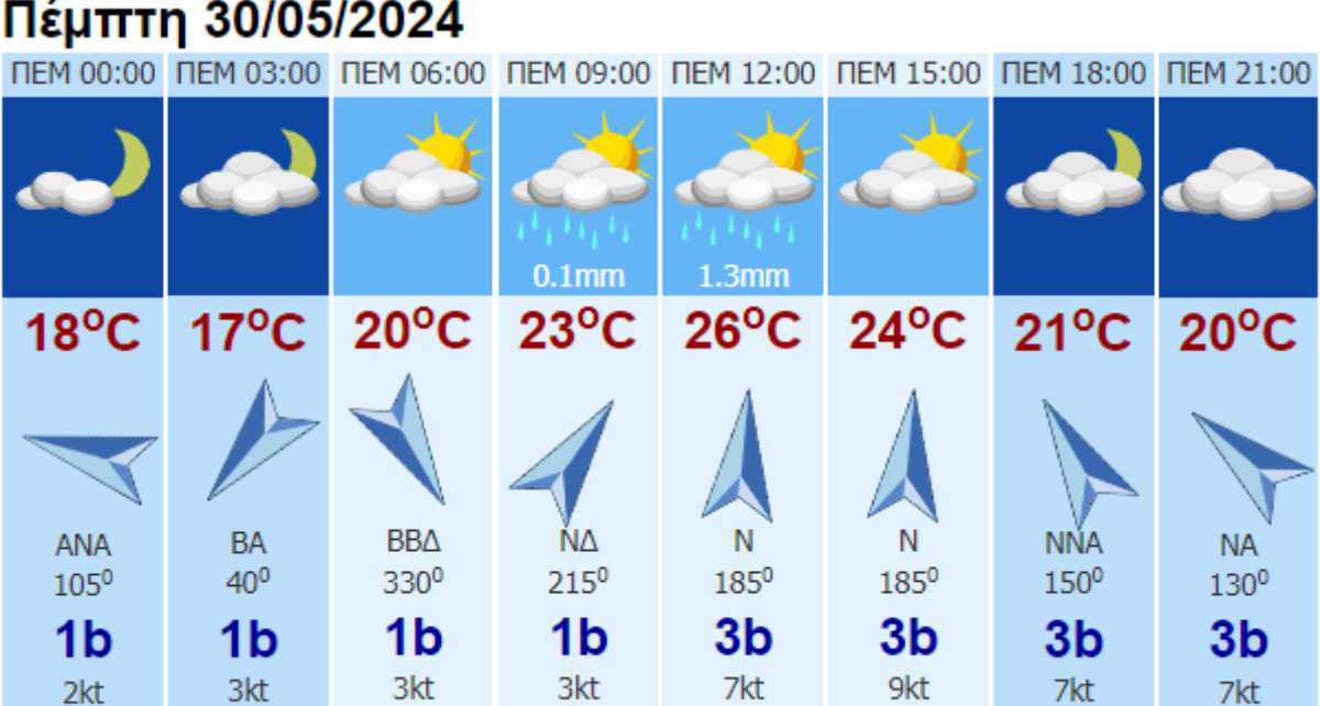 Ο καιρός σήμερα Πέμπτη 30/05/2024